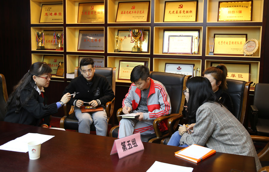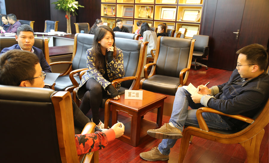 課后,大家分組討論公司發展中存在的問題,并由組長代表小組上臺發言。董事長、總經理鄭浩,總經理助理陳建先后對各組提出的8個問題一一進行回應。