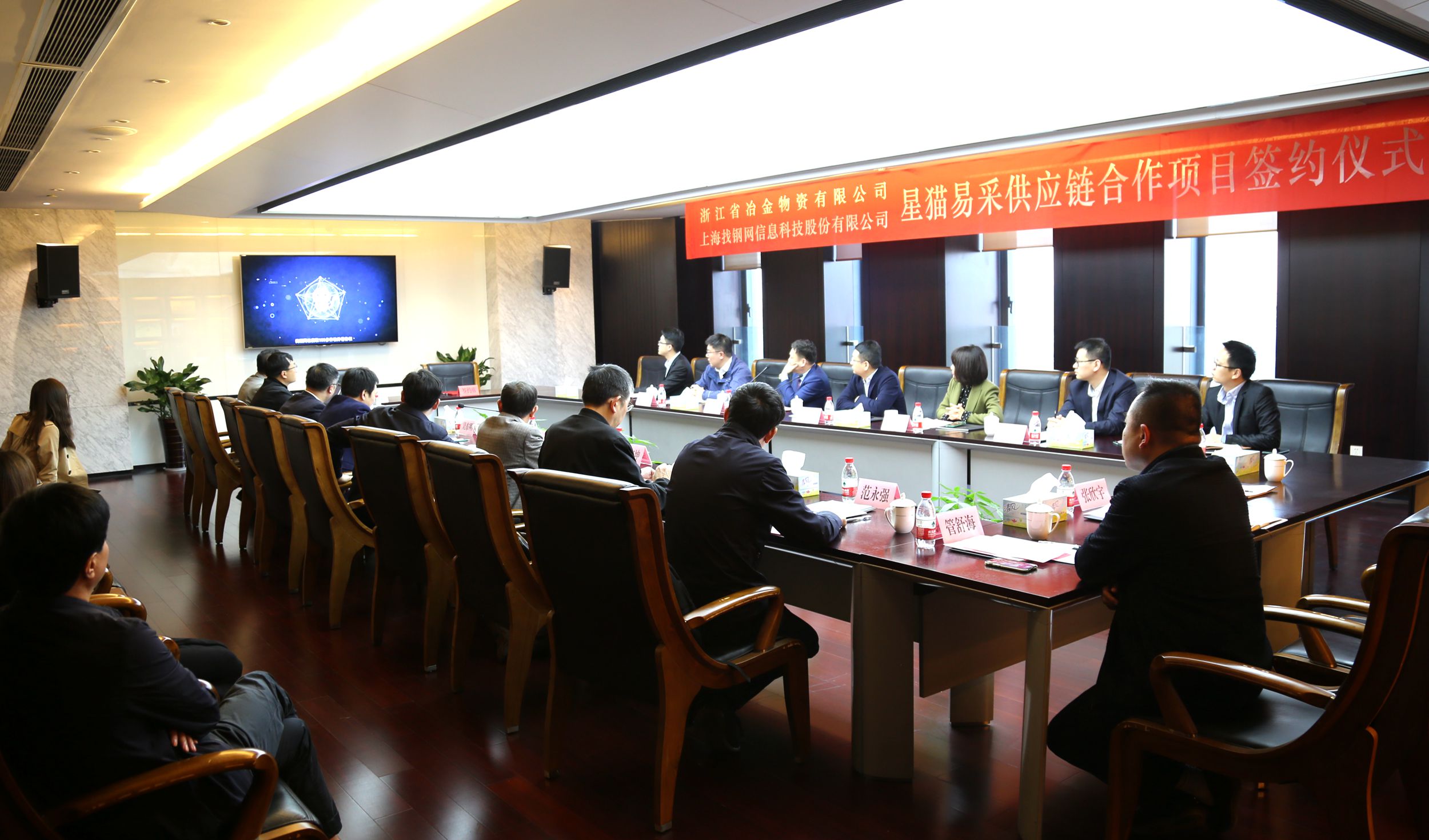 11月10日,冶金物資和找鋼網舉行了戰略合作簽約儀式。雙方在2017年開展優勢互補的戰略合作基礎上,聯合推出“星貓易采”供應鏈戰略合作項目,并將進一步在利用互聯網、云計算等新技術助力傳統行業數字化轉型等方面,加強資源共享、共建共贏,共同開創電商平臺合作新模式。集團黨委副書記、總經理林亮,副總經理吳東明,找鋼網創始人、CEO王東,黨委書記、高級副總裁宮穎欣,集團公司、經濟運行部、戰略發展部、杭鋼云計算公司、商貿集團和找鋼網鋼廠運營事業部、電商事業部、胖貓物流事業部等相關領導出席會議。
